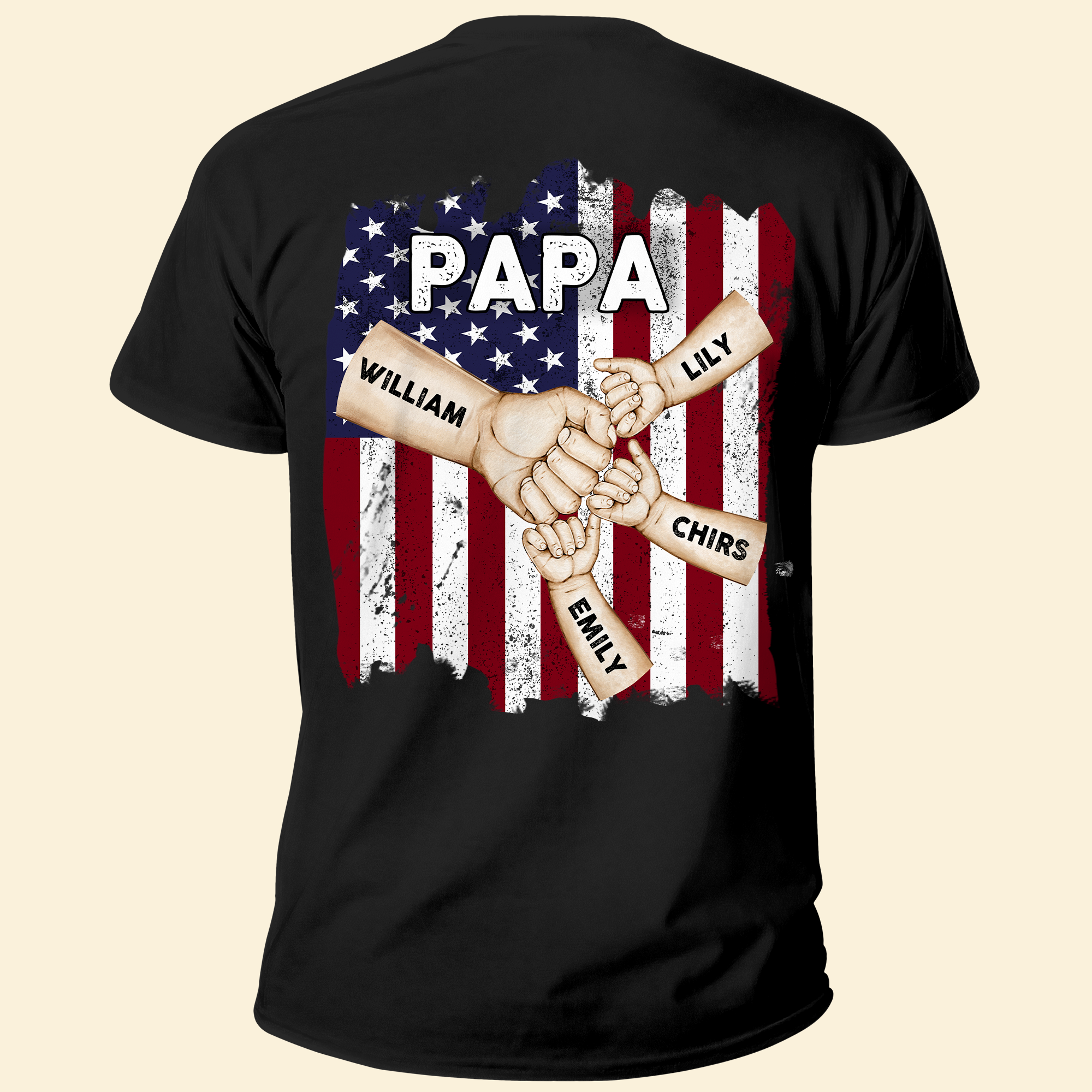 Dad Papa Hand Bump 4th Of July American Flag – PersonalizedOne Size Shirt