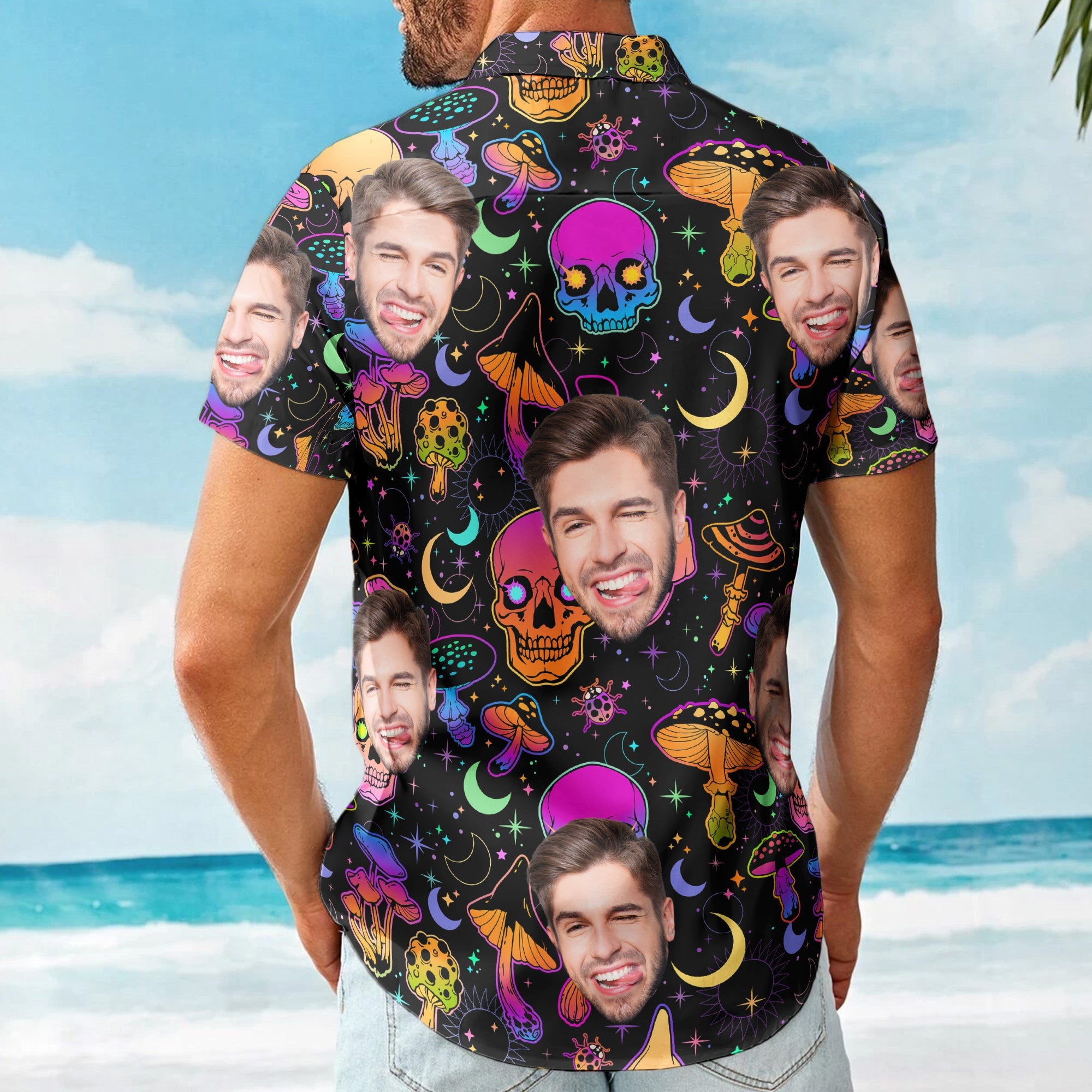 Magic Mushroom And Skull Gift For Men - Custom Photo Hawaiian Shirts