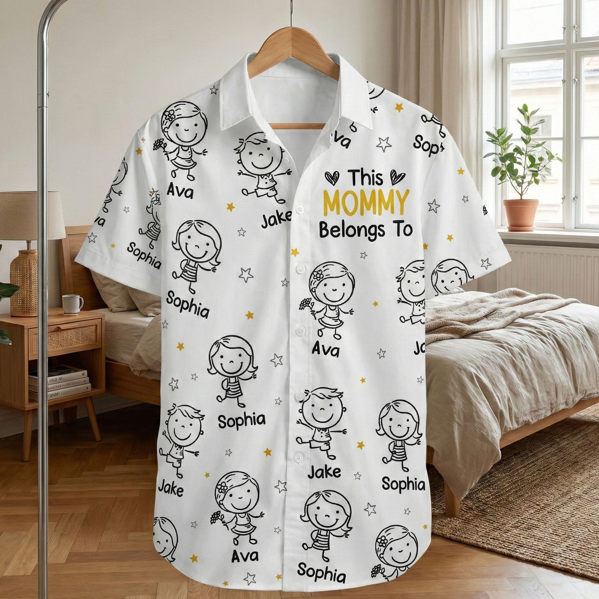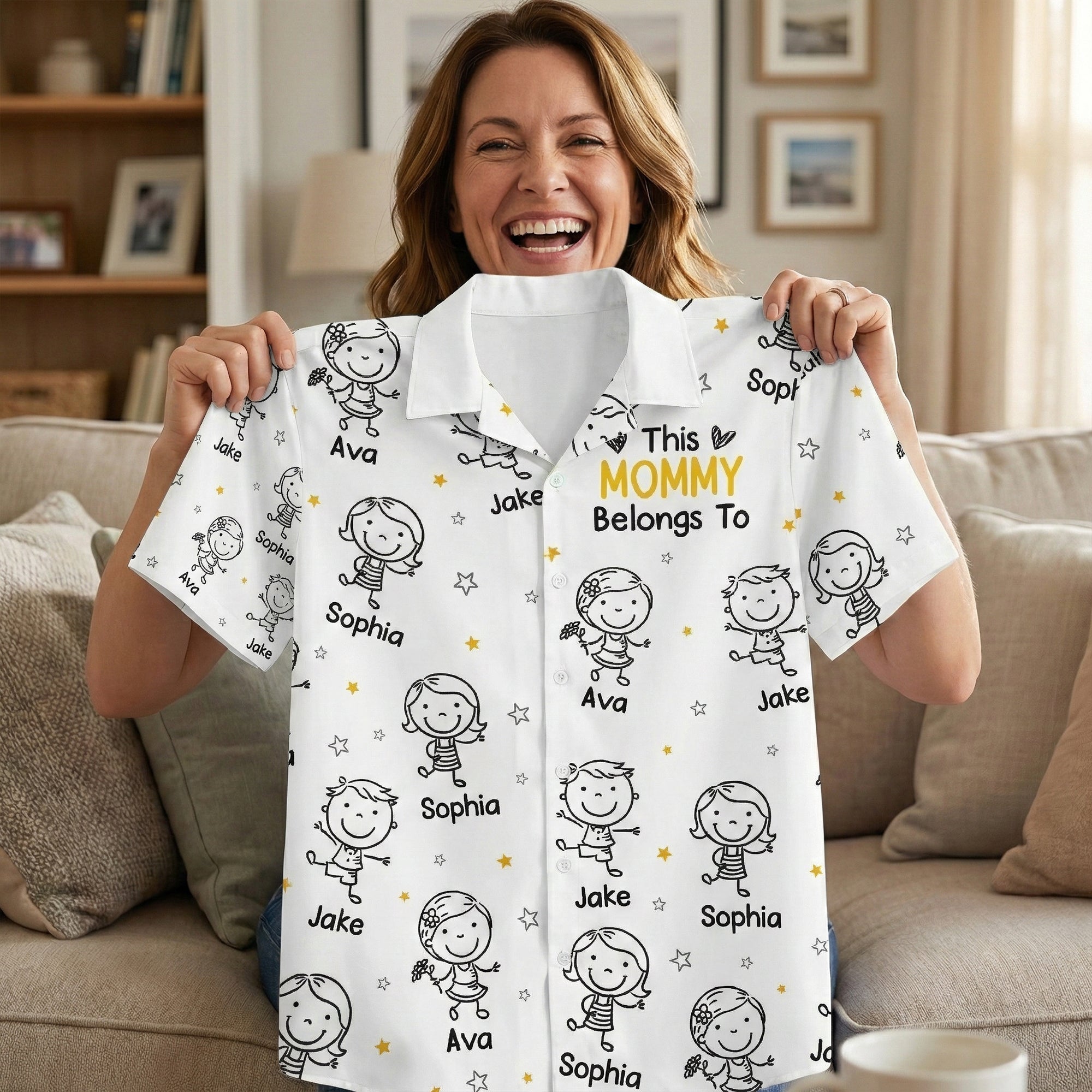 Highlight your special bond with your children in a fun, symbolical way with our This Mommy Belongs To Doodle – Personalized Hawaiian Shirt. Trust us, no one does casual and familial style quite like us! Our special mommy shirt is a testament of your irreplaceable role as a mother, a tangible symbol of your beautiful family line. Its bright colors and unique design are getting a buzz in the family-oriented crowd, making it a gift-worthy piece for occasions like birthdays, Christmas, Mother’s Day, or just-because family moments.